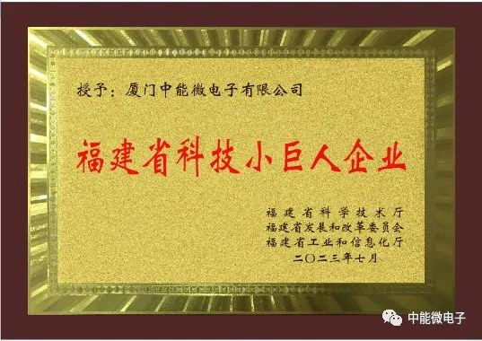中能微電子榮獲“福建省科技小巨人企業(yè)”稱號(hào)!